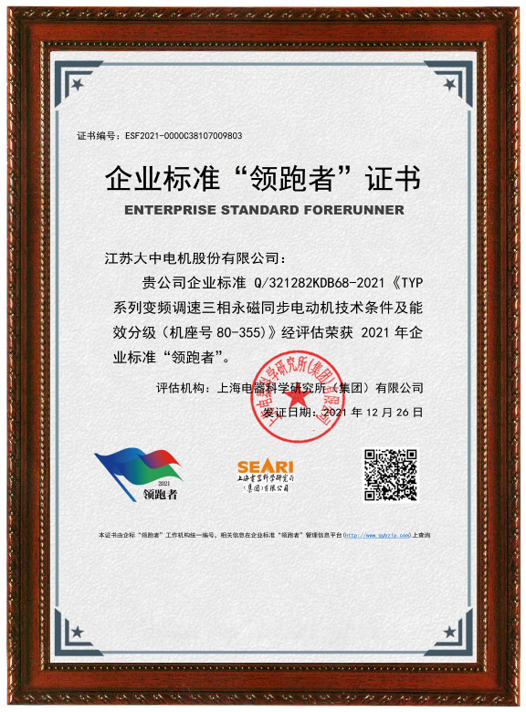 企業(yè)標(biāo)準(zhǔn)“領(lǐng)跑者”證書(shū)